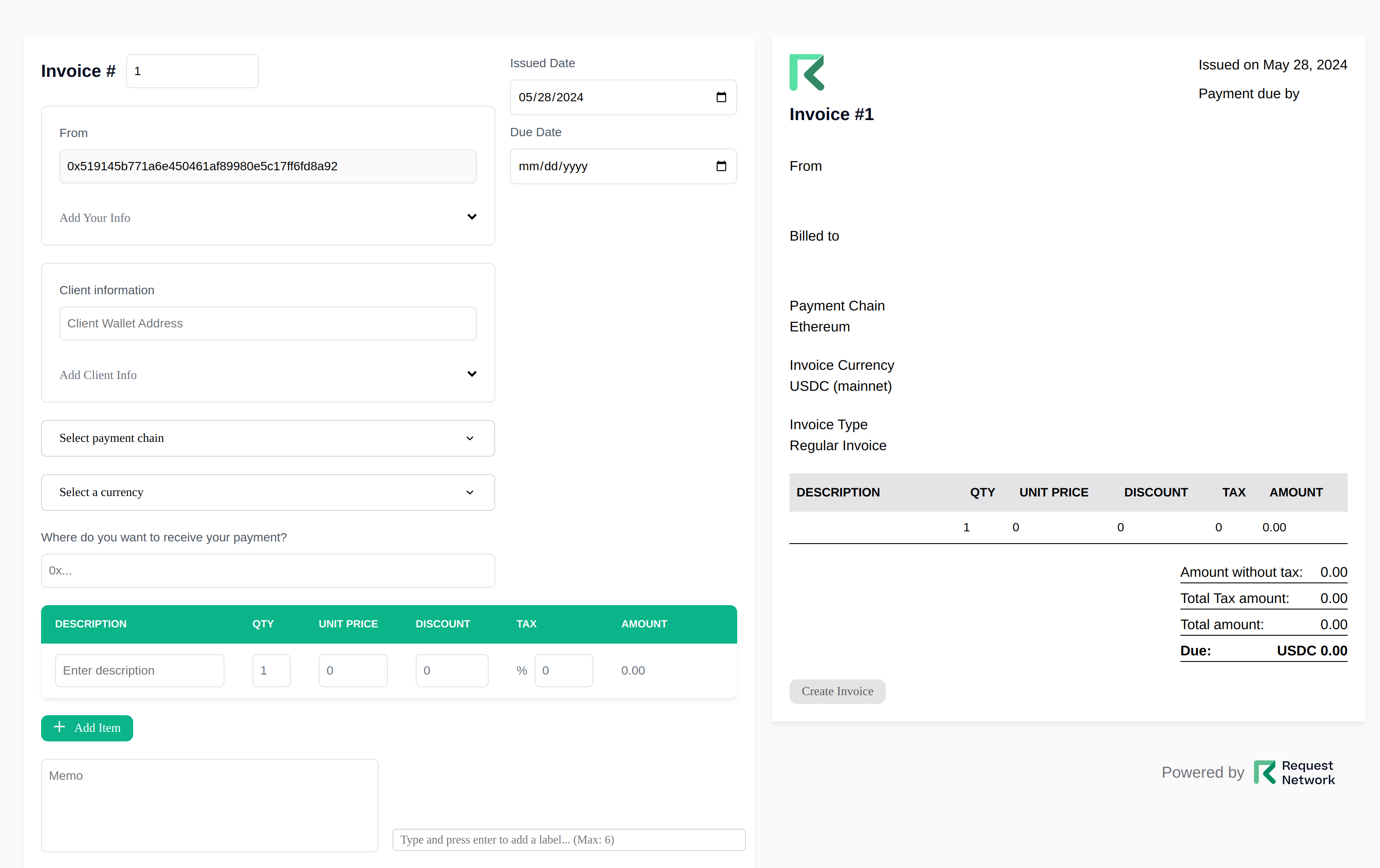 <figure><img src="https://1914277788-files.gitbook.io/~/files/v0/b/gitbook-x-prod.appspot.com/o/spaces%2Fei6UAiSK3iAAi0mFH667%2Fuploads%2Fgit-blob-d20cd390f77a603cd1401c25673c890bcc2d7fc8%2Fimage%20(7).png?alt=media" alt=""><figcaption><p>Screenshot of @requestnetwork/create-invoice-form 0.2.0</p></figcaption></figure>
