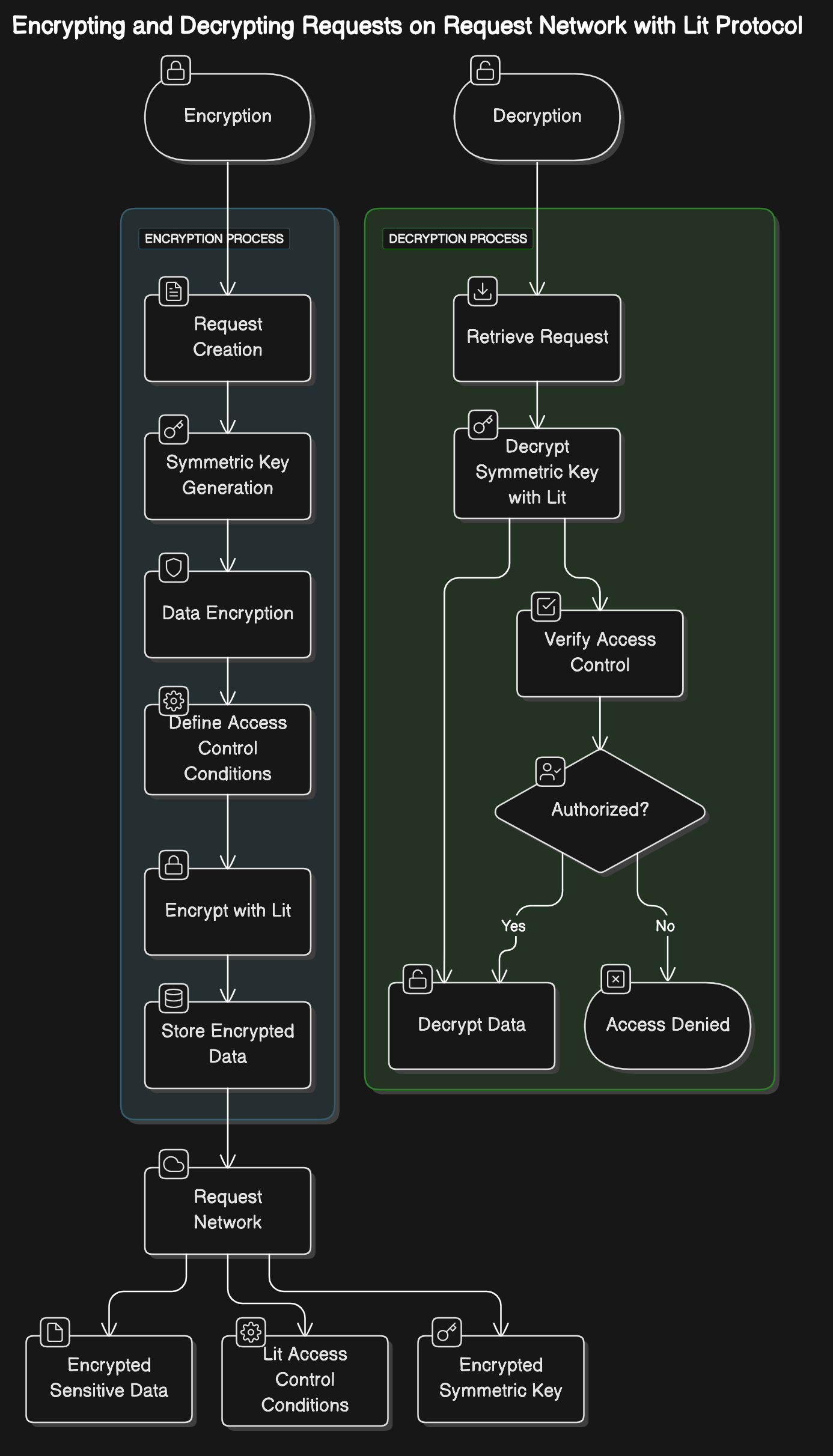 For a deeper introduction to Encryption and Decryption in Request Network, see [private-requests-using-encryption](https://docs.request.network/advanced/protocol-overview/private-requests-using-encryption "mention")