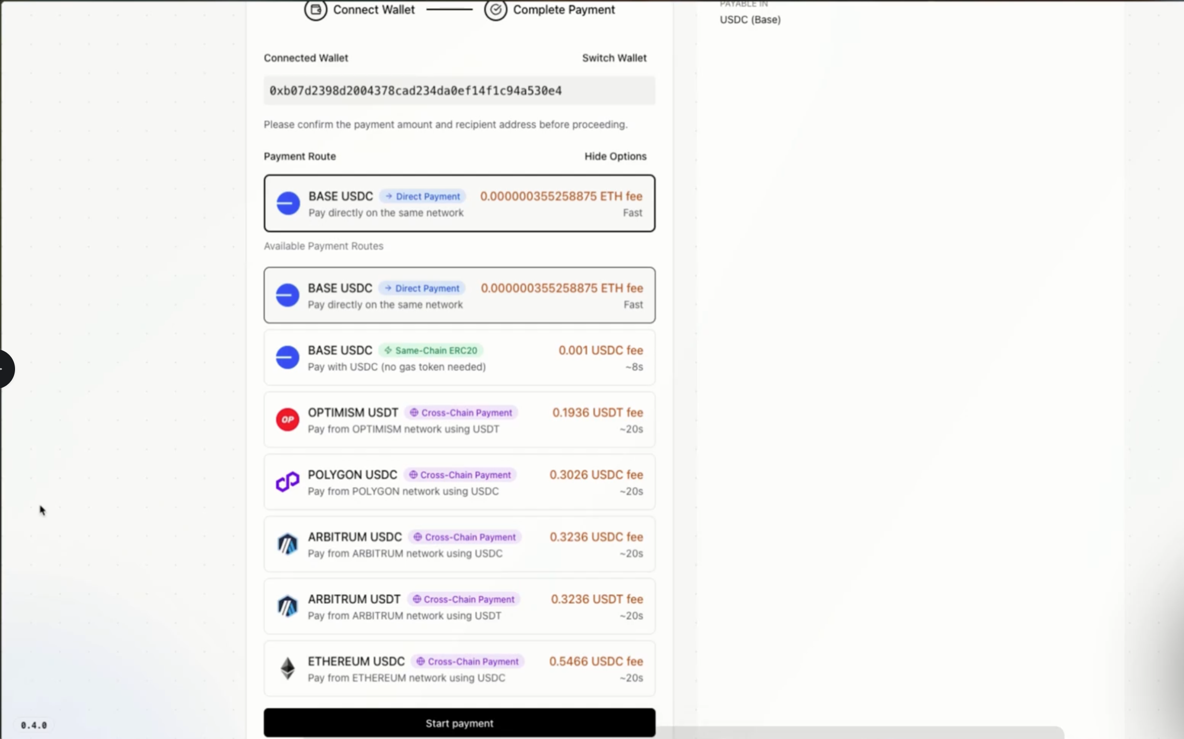 For Crosschain (and Samechain) Payments, EasyInvoice supports 12 stablecoins: USDC/USDT/DAI on 4 chains (Ethereum, Arbitrum One, Base, OP Mainnet)