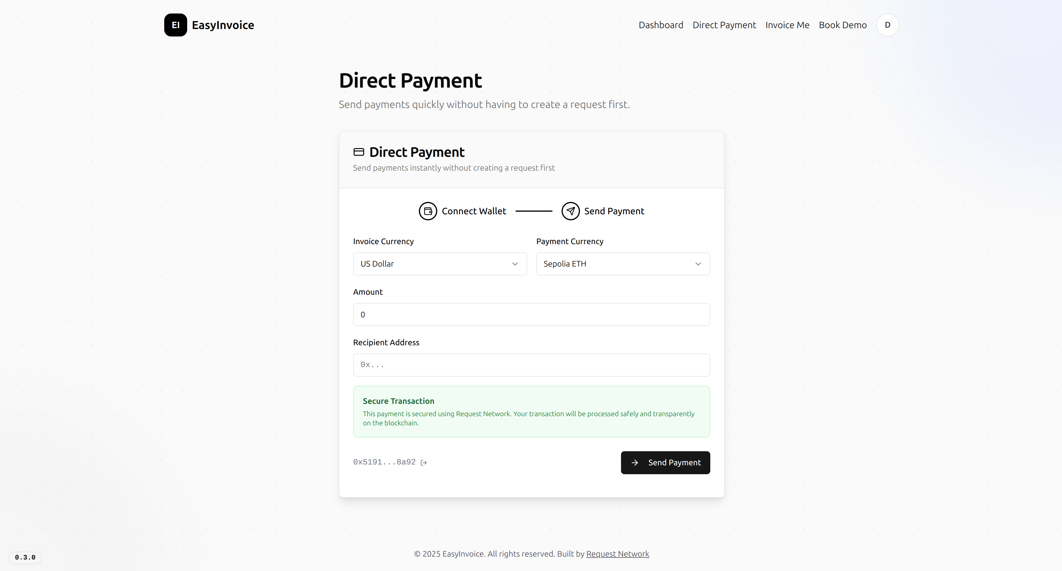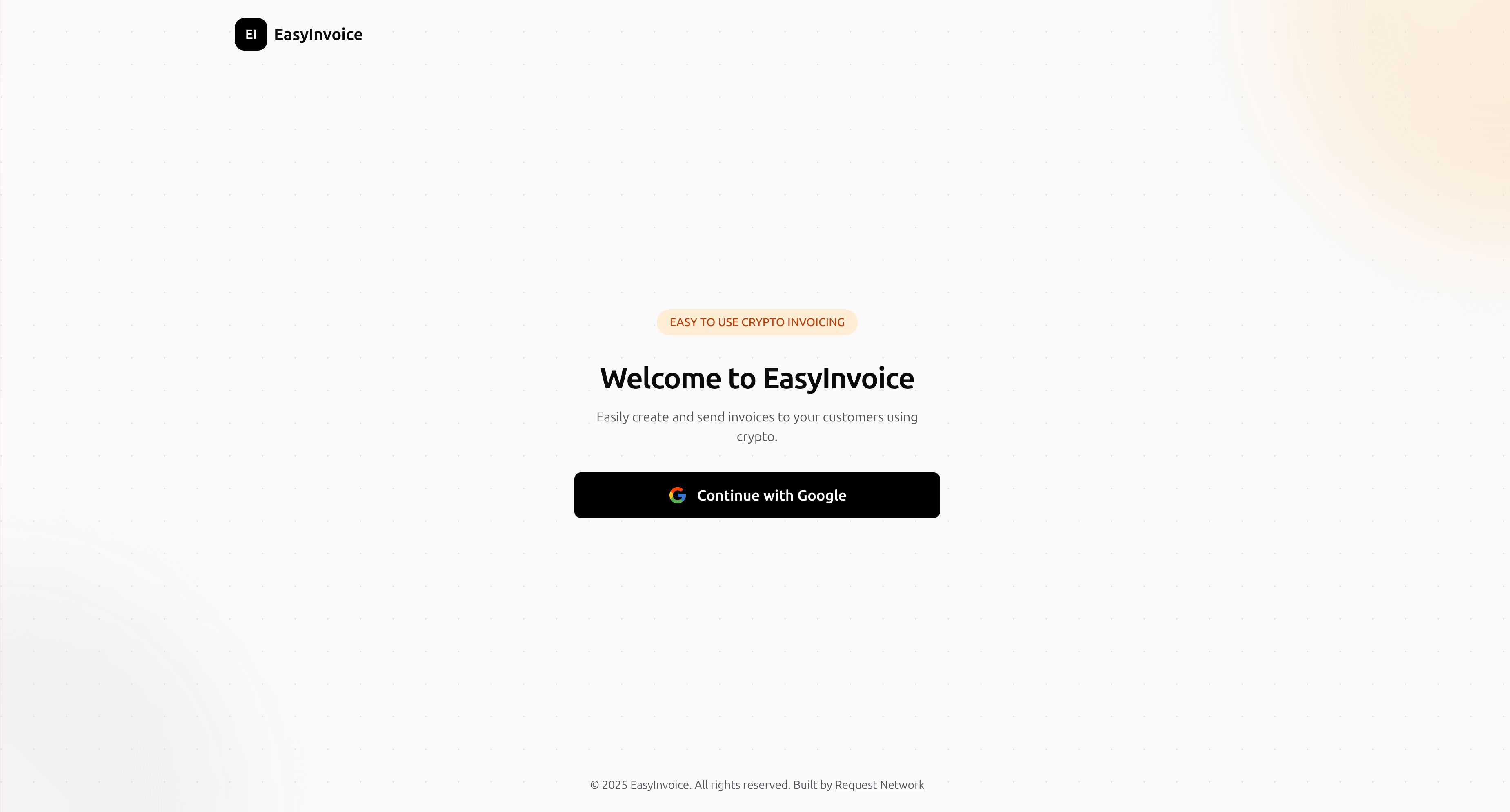 EasyInvoice is a web application built with Next.js that allows users to create and manage invoices, and accept crypto payments via the Request Network API. It mimics Web2 apps in its functionalities, providing a user-friendly experience with Google login and real-time updates.